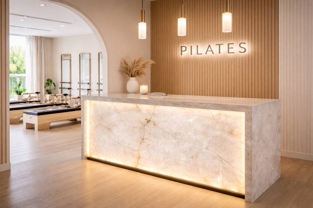 Cuarcita Cristallo Premium es una piedra natural de tonalidad blanca translúcida con estructura cristalina marcada y vetas cálidas sutiles. Se caracteriza por su capacidad de transmitir luz y generar efectos visuales únicos, posicionándose como un material de alto valor arquitectónico y estético.