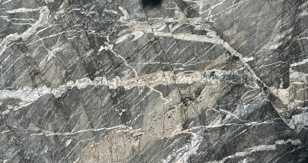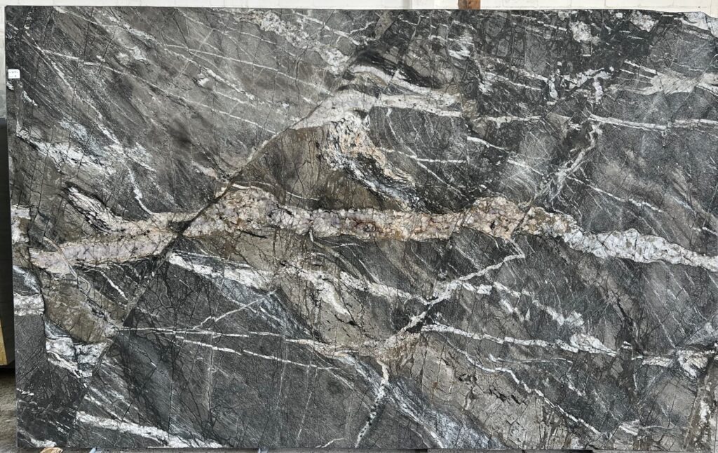 La cuarcita Victory Gray tiene un hermoso color gris oscuro con vetas blancas, lo que le da un aspecto elegante y sofisticado.