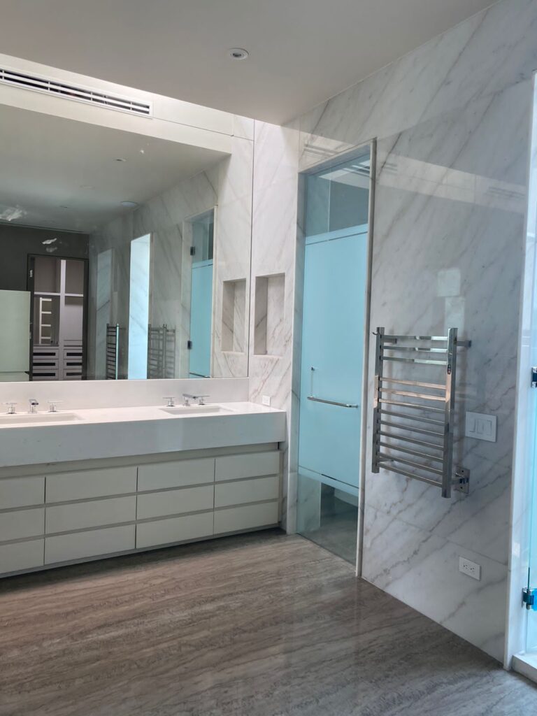 Gracias a su resistencia y apariencia única, el mármol Vena Oro es también una excelente opción para revestir paredes en zonas de alto tráfico o en ambientes que requieran un toque de elegancia, como baños, cocinas y áreas de recepción.
