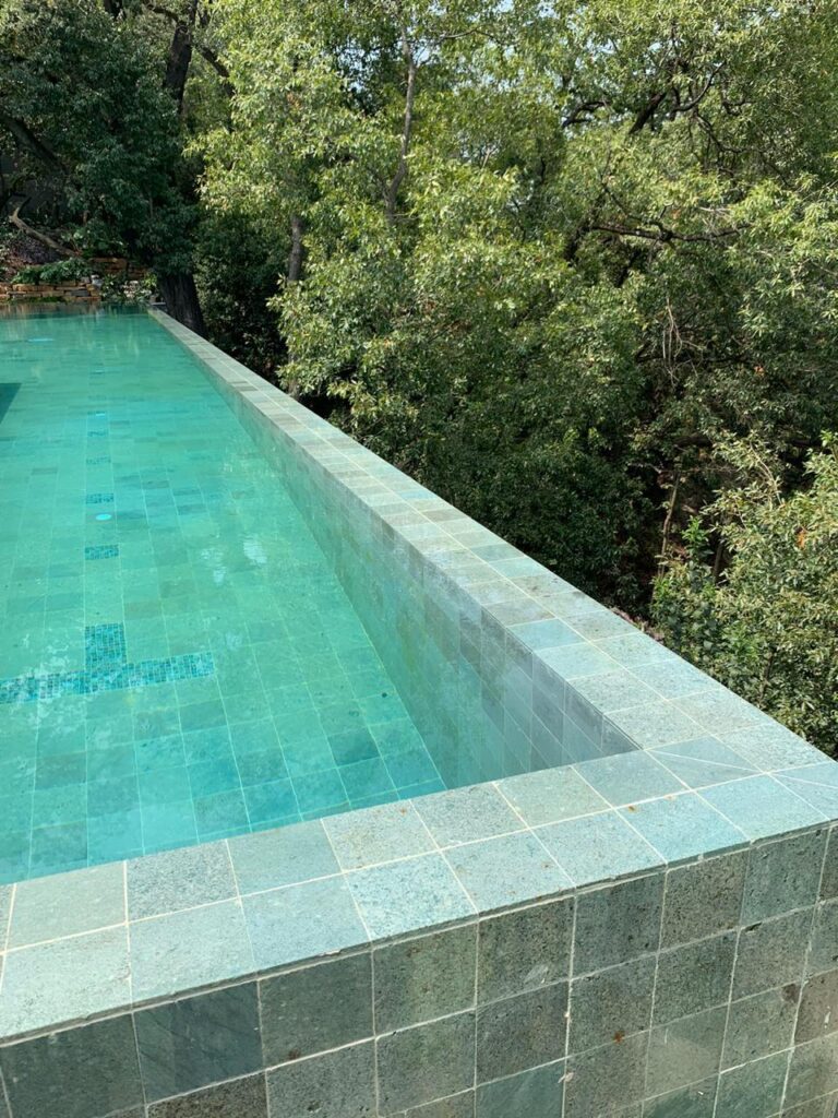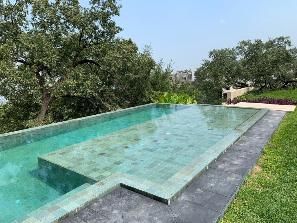 La piedra Green Lagoon es una excelente opción para pisos en interiores y exteriores debido a su textura suave y uniforme, así como a su alta resistencia y durabilidad.