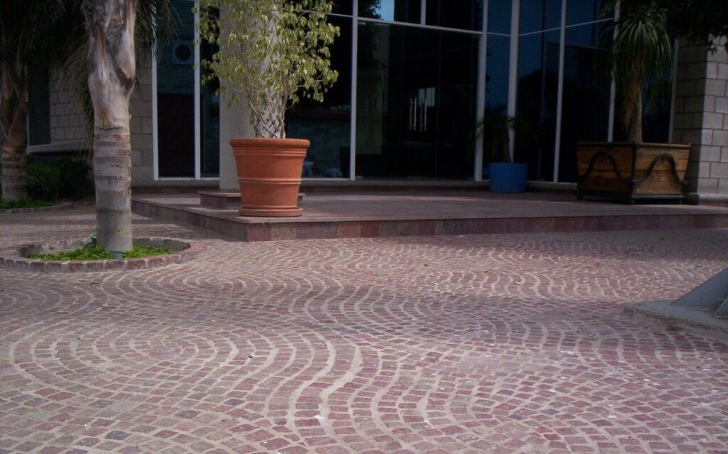 El porfido rojo se usa para pavimentar suelos en zonas de alto tráfico, como entradas, pasillos y escaleras, ya que su dureza y resistencia la hacen ideal para soportar el desgaste.