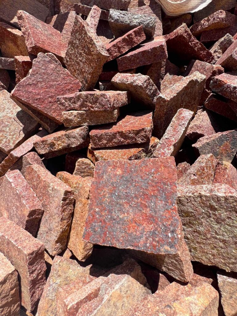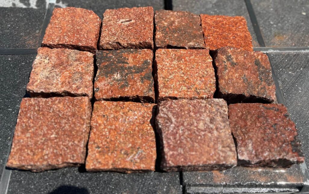 Porfido rojo tiene un aspecto estético muy atractivo debido a su color rojo oscuro y su textura rugosa, lo que le da un aspecto natural y elegante a los espacios.