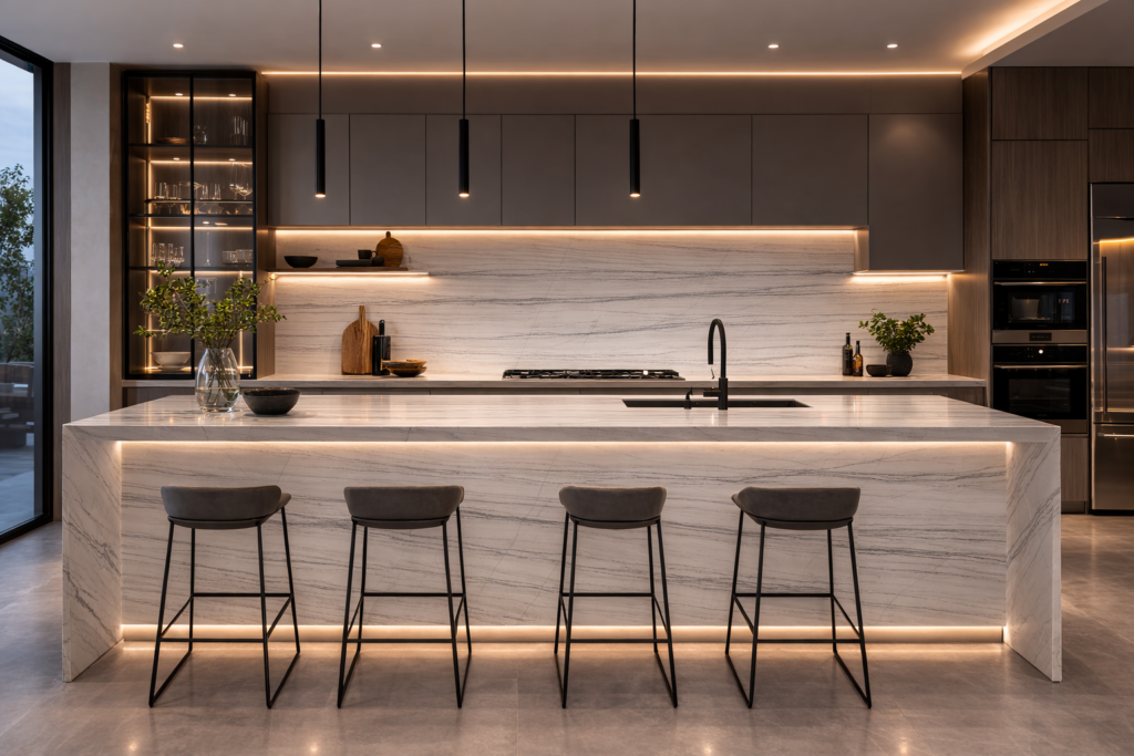 Funciona bien en barras de cocina o baño, especialmente en diseños limpios y contemporáneos.