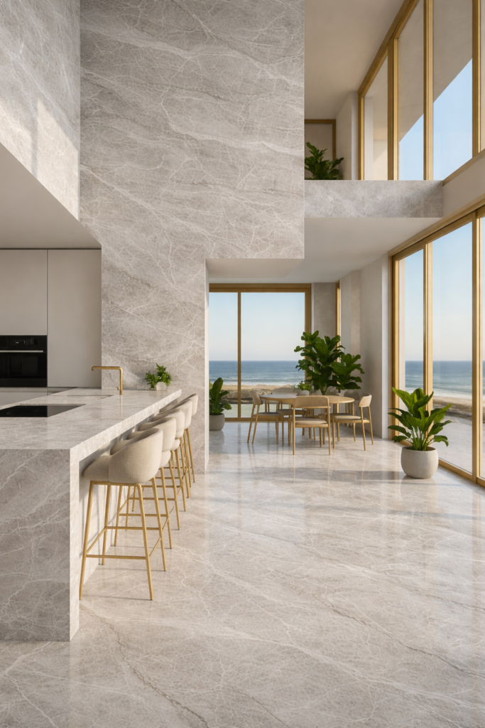 Cuarcita Taj Mahal es adecuada para pisos donde se busca continuidad, luminosidad y resistencia.